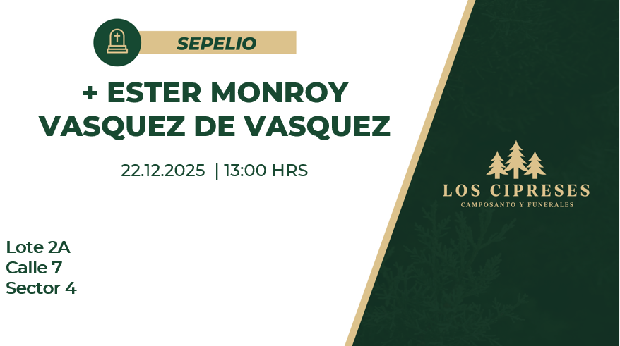 Ubicación del Sepelio: Lote 2A Calle 7 Sector 4