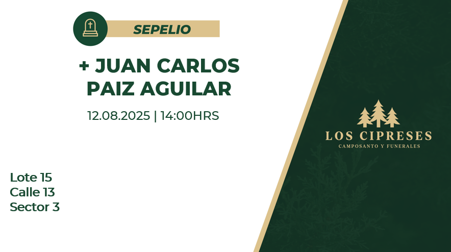 Ubicación del Sepelio: Lote 15 Calle 13 Sector 3