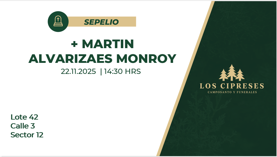 Ubicación del Sepelio: Lote 42 Calle 3 Sector 12