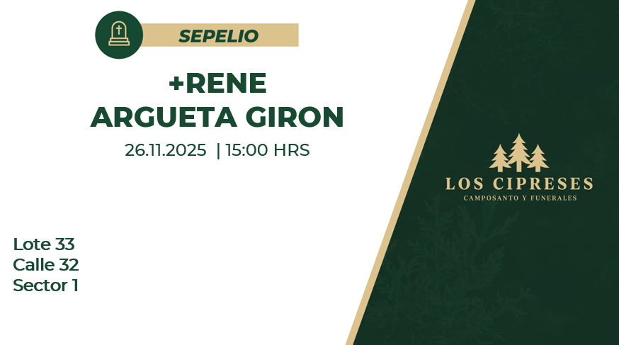 Ubicación del Sepelio: Lote 33 Calle 32 Sector 01