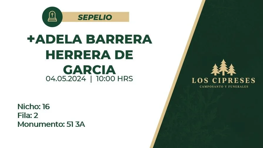Ubicación del Entierro: Nicho 16 Fila 2 Monumento 51 3A