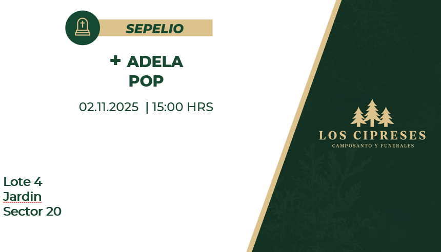 Ubicación del Sepelio: Lote 4 Jardin Sector 20
