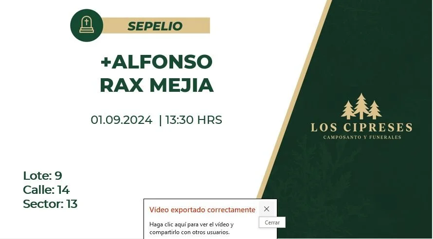 Ubicación del Entierro: Lote 9 Calle 14 Sector 13