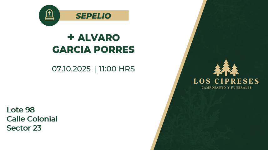 Ubicación del Sepelio: Lote 98 Colonial Sector 23