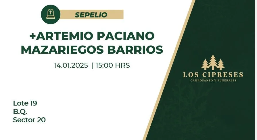 Ubicación del Entierro: Lote 19 Calle B.Q. Sector 20