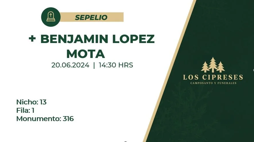 Ubicación del Entierro: Nicho 13 Fila 1 Monumento 316