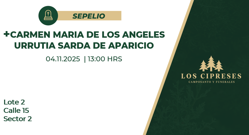 Ubicación del Sepelio: Lote 2 Calle 15 Sector 2