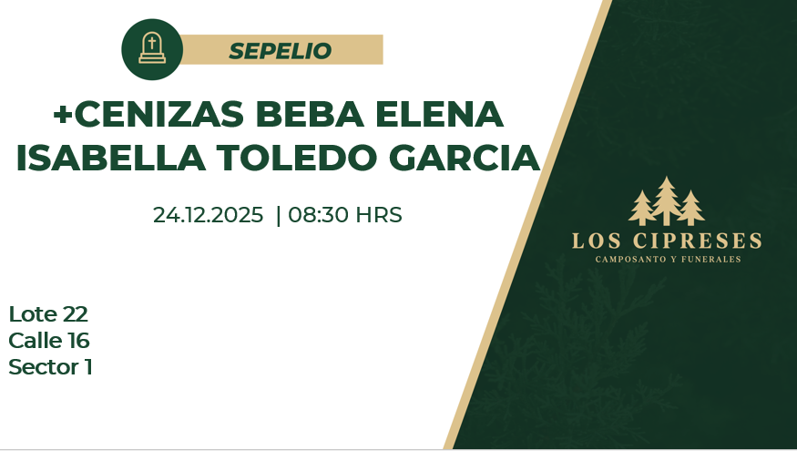 Ubicación del Sepelio: Lote 22 calle 16 sector 1