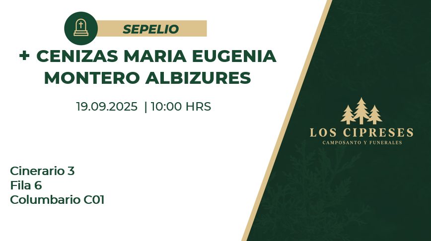 Ubicación del Sepelio: Columbario C01