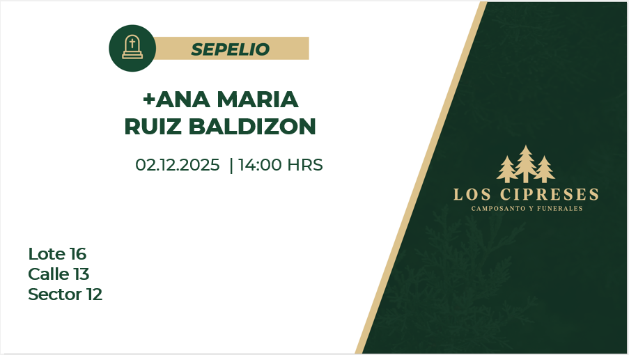 Ubicación del Sepelio: Lote 16 Calle 13 Sector 12