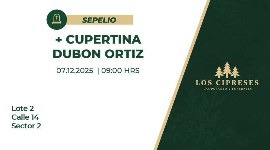 Ubicación del Sepelio: Lote 2 Calle 14 Sector 2