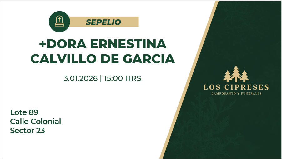 Ubicación del Sepelio: Lote 89 Calle Colonial Sector 23