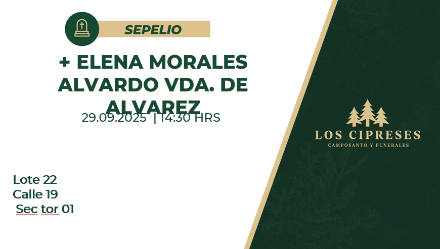 Ubicación del Sepelio: Lote 22 Calle 19 Sector 1