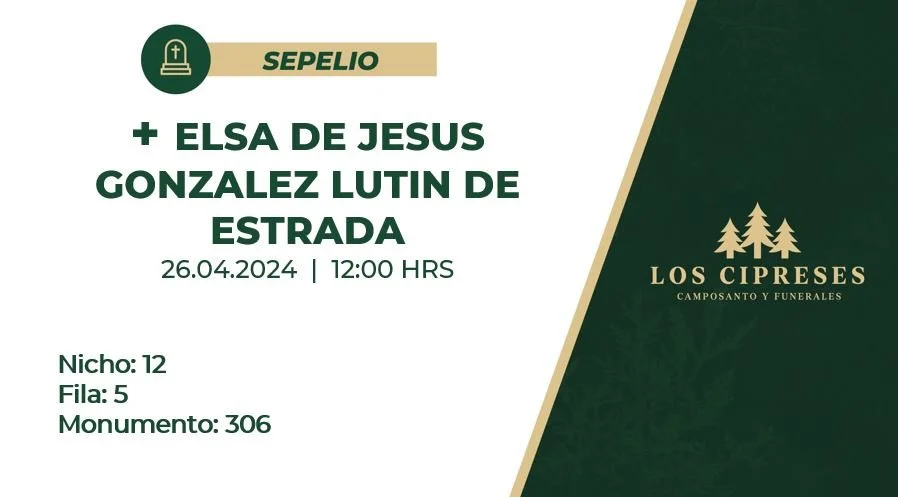 Ubicación del Entierro: Nicho 12 Fila 5 Monumento 306