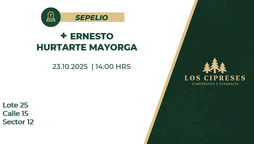 Ubicación del Sepelio: Lote 25 Calle 15 Sector 12