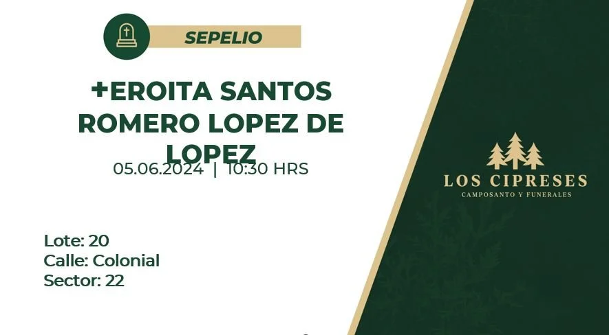 Ubicación del Entierro: Lote 20 Calle Colonial Sector 22