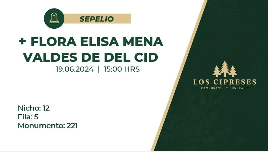 Ubicación del Entierro: Nicho 12 Fila 5 Monumento 221