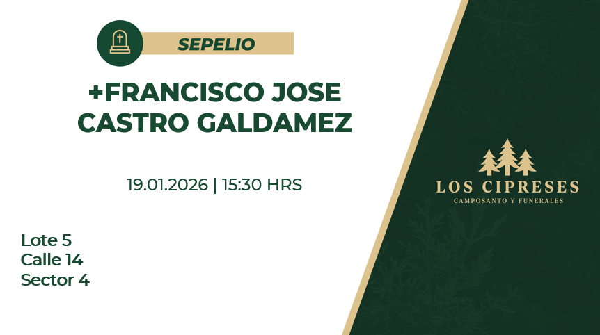Ubicación del Sepelio: Lote 5 Calle 14 Sector 4