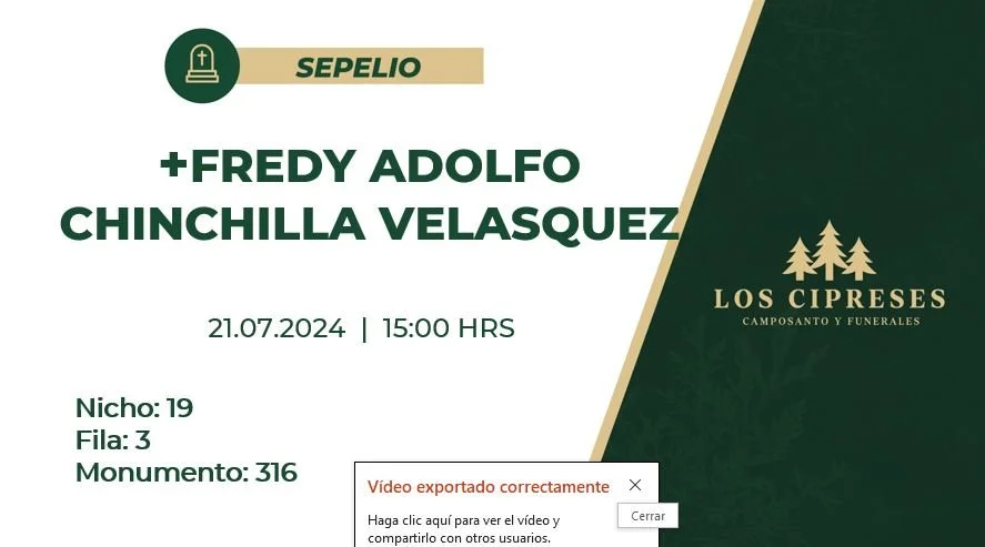 Ubicación del Entierro: Nicho 19 Fila 3 Monumento 316