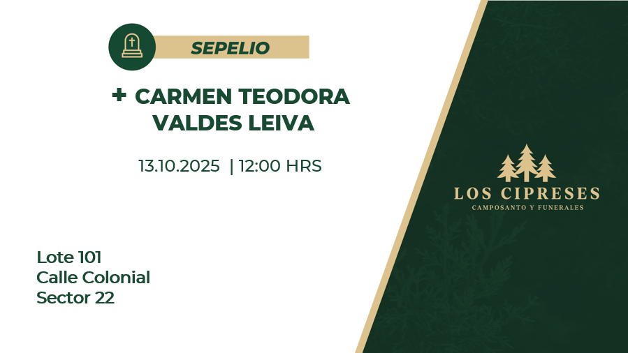 Ubicación del Sepelio: Lote 101 Calle Colonial Sector 22