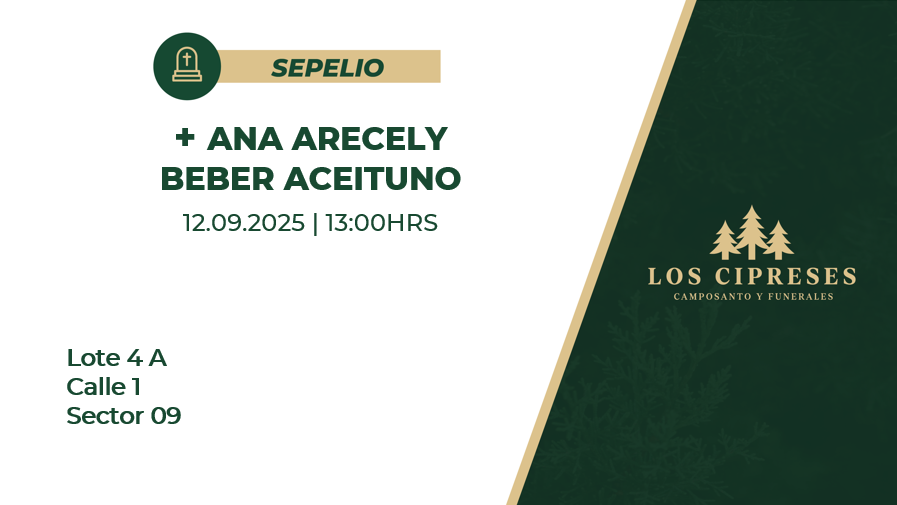 Ubicación del Sepelio: Lote 4 A Calle 1 Sector 9