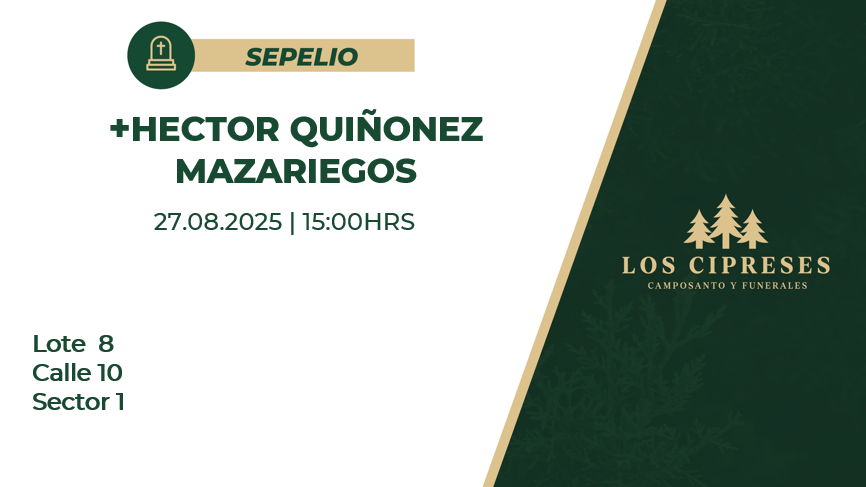 Ubicación del Sepelio: Lote 8 Calle 10 Sector 1