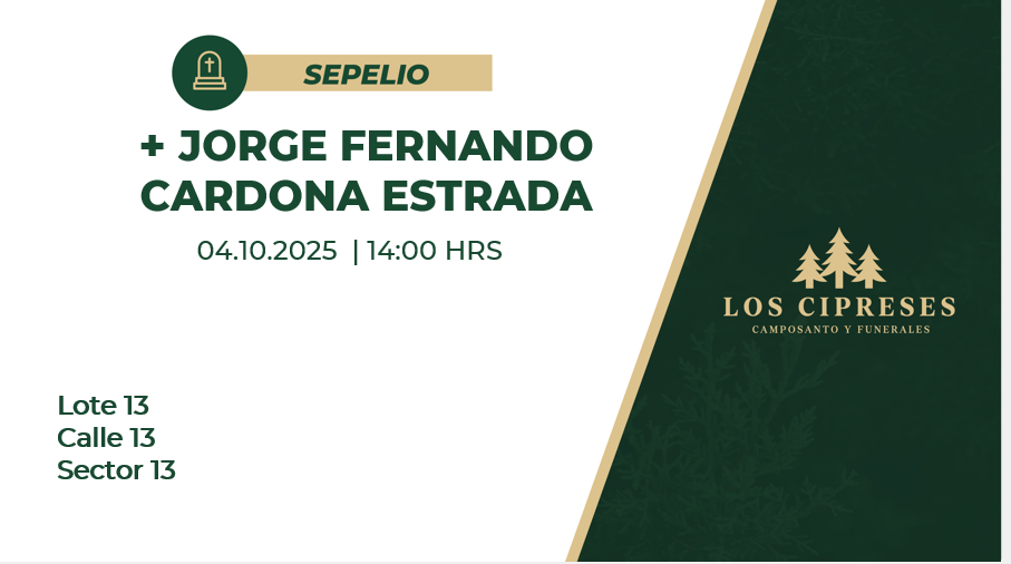 Ubicación del Sepelio: Lote 13 Calle 13 Sector 13