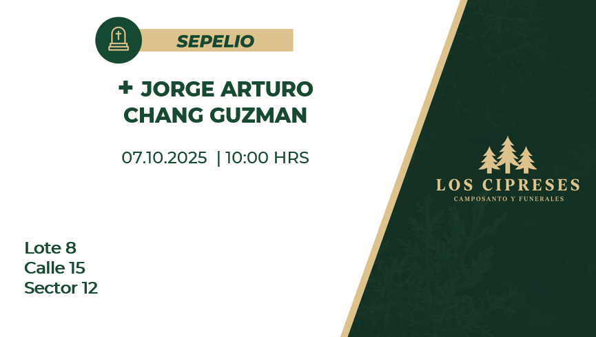 Ubicación del Sepelio: Lote 8 Calle 15 Sector 12