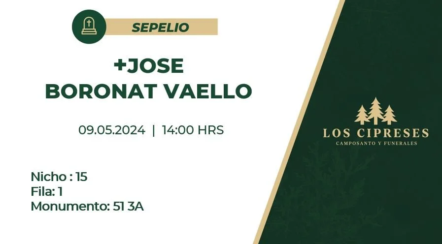 Ubicación del Entierro: Nicho 15 Fila 1 Monumento 51 3A