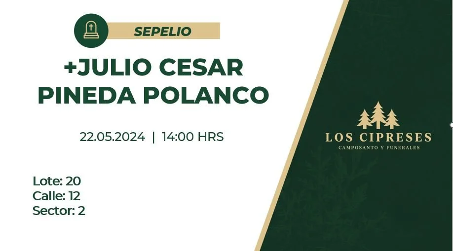Ubicación del Entierro: Lote 20 Calle 12 Sector 2
