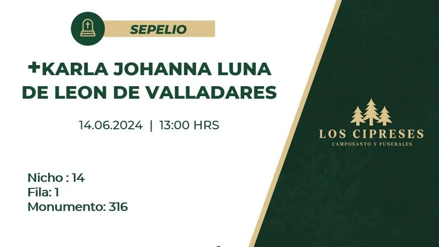 Ubicación del Entierro: Nicho 14 Fila 1 Monumento 316