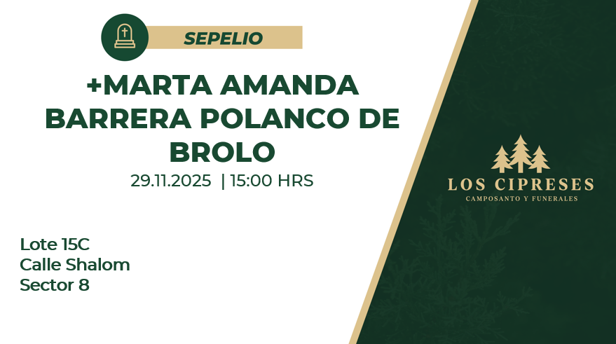 Ubicación del Sepelio: Lote 15C Calle Shalom Sector 8
