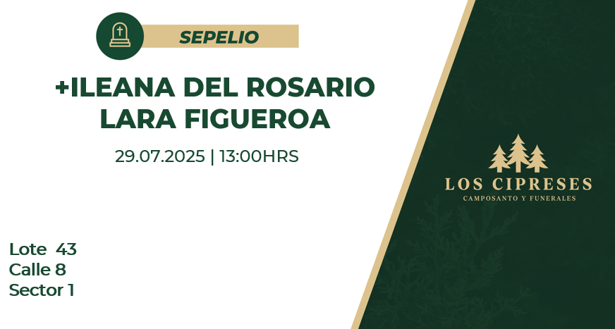 Ubicación del Sepelio: Lote 43 Calle 8 Sector 1