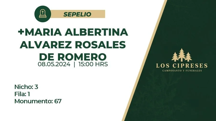 Ubicación del Entierro: Nicho 3 Fila 1 Monumento 67