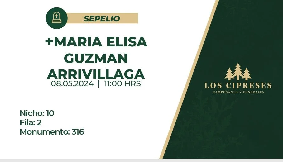 Ubicación del Entierro: Nicho 10 Fila 2 Monumento 316