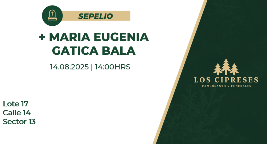 Ubicación del Sepelio: Lote 17 Calle 14 Sector 13