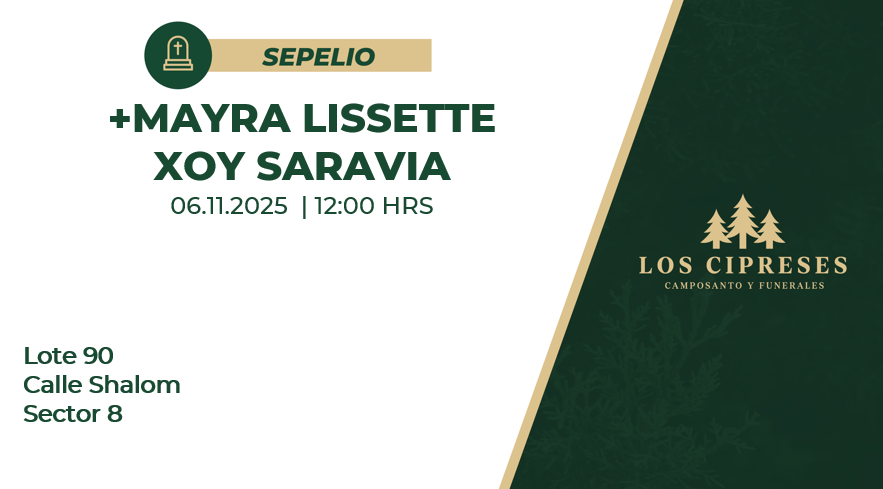 Ubicación del Sepelio: Lote 90 Calle Shalom Sector 08