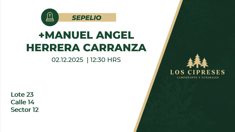 Ubicación del Sepelio: Lote 23 Calle 14 Sector 12