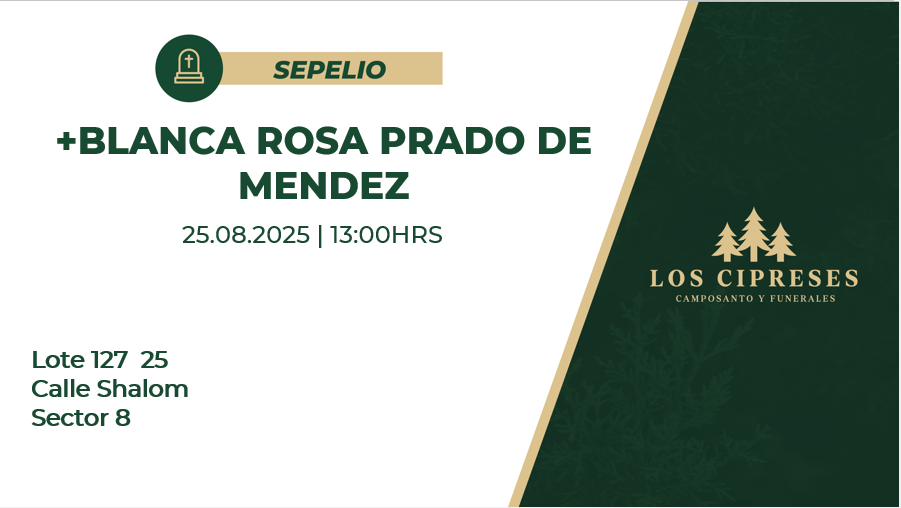 Ubicación del Sepelio: Lote 127 Calle Shalom Sector 8