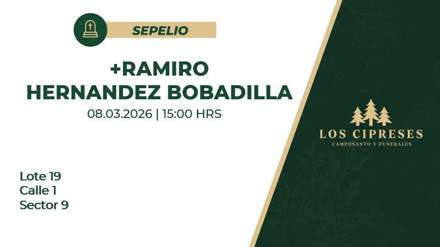 Ubicación del Sepelio: Lote 19 calle 1 sector 9