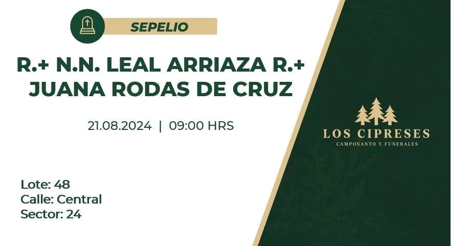 Ubicación del Entierro: Lote 48 Calle Central Sector 24