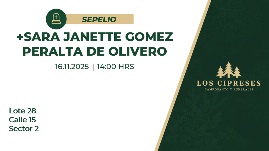Ubicación del Sepelio: Lote 28 Calle 15 Sector 04