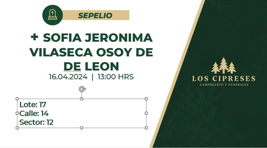Ubicación del Entierro: Lote 17 Calle 14 Sector 12