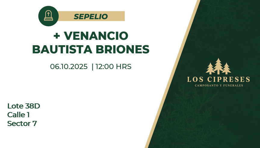 Ubicación del Sepelio: Lote 38D Calle 1 sector 7