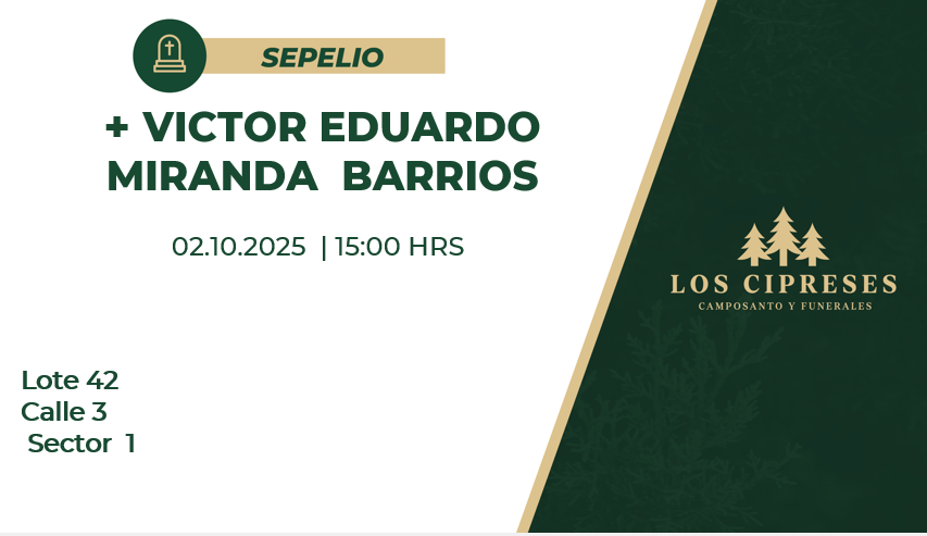 Ubicación del Sepelio: Lote 42 Calle 3 Sector 1