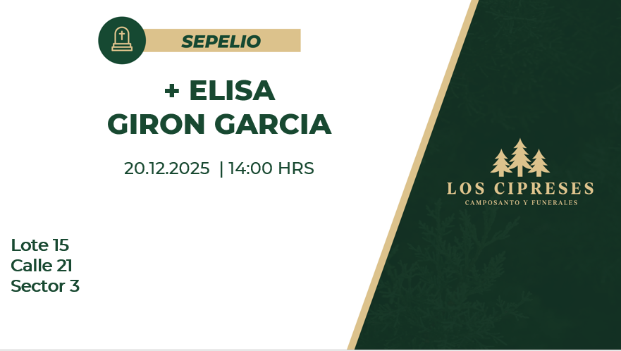 Ubicación del Sepelio: Lote 15 Calle 21 Sector 3